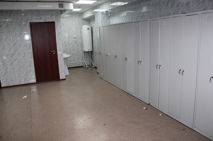 На первом этаже здания спорткомплекса расположен игровой зал 36 х 18 метров. Здесь же – две раздевалки, тренерская, медицинский кабинет, служебные помещения, в том числе для маломобильных групп населения. На втором этаже – зал для занятий греко-римской борьбой и кикбоксингом, две раздевалки, тренерская.
