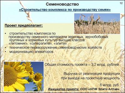 Проект по строительству комплекса по производству семян (ООО «НПФ Элита Алтая»).