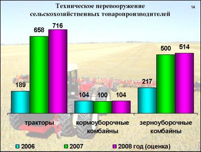 В Алтайском крае за счет средств краевого бюджета данная форма государственной поддержки действует более 2 лет и показывает чрезвычайно высокую востребованность и эффективность. За последние три года объем приобретения техники и оборудования вырос более чем в 5 раз, по итогам 2008 года мы ожидаем, что объем приобретения техники и оборудования составит не менее 6 млрд. рублей.