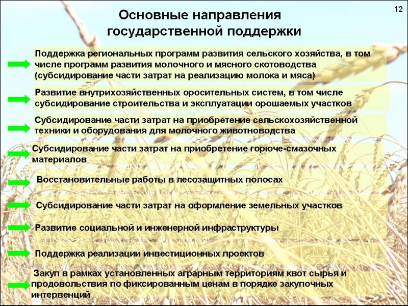 Государственная поддержка сельского хозяйства. Направления господдержки